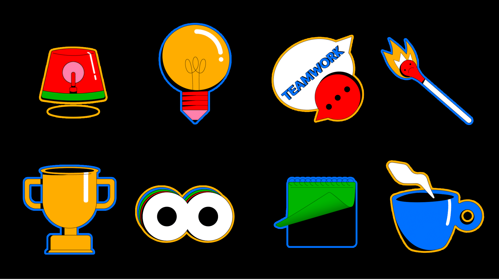 I created this animated sticker set to explore how motion can make everyday Slack conversations feel more human. Each sticker represents a familiar productivity state or work moment, designed with simple forms and expressive animation so they read clearly at small sizes and loop naturally in team chats. The illustrations were created in Adobe Illustrator and animated in After Effects.